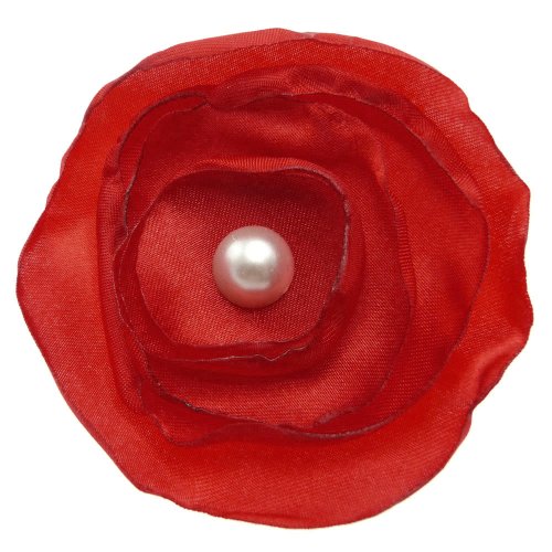 Ange Out Of The City - Broche Pince À Cheveux Bibi mariage soirée cérémonie - fleur ronde plate satin Rouge - perle blanche