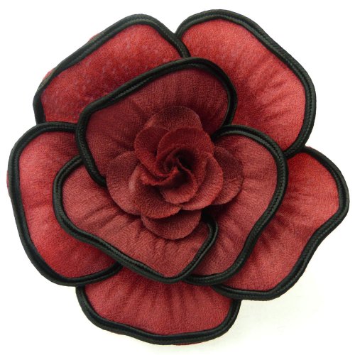 Ange Out Of The City - Broche Pince À Broche Pince À Cheveux Bibi coiffe mariage soirée danseuse Fleur en Tissu rouge foncé bordeaux - liseré noir