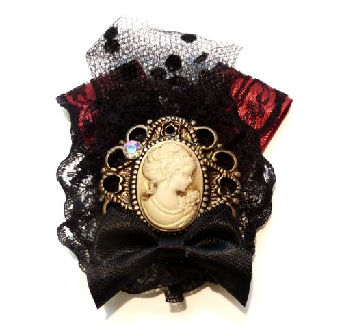 Ce commentaire fait référence à cette édition : Soyokay - Broche Pince À Cheveux Bibi - Noeud Ruban - Satin Rouge Bordeaux - Dentelle Noire - Camée Beige