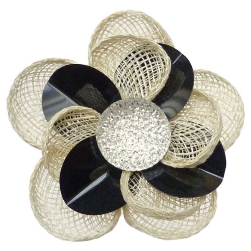 - Fleur en sisal ornée de pétales noires et d'un strass blanc.